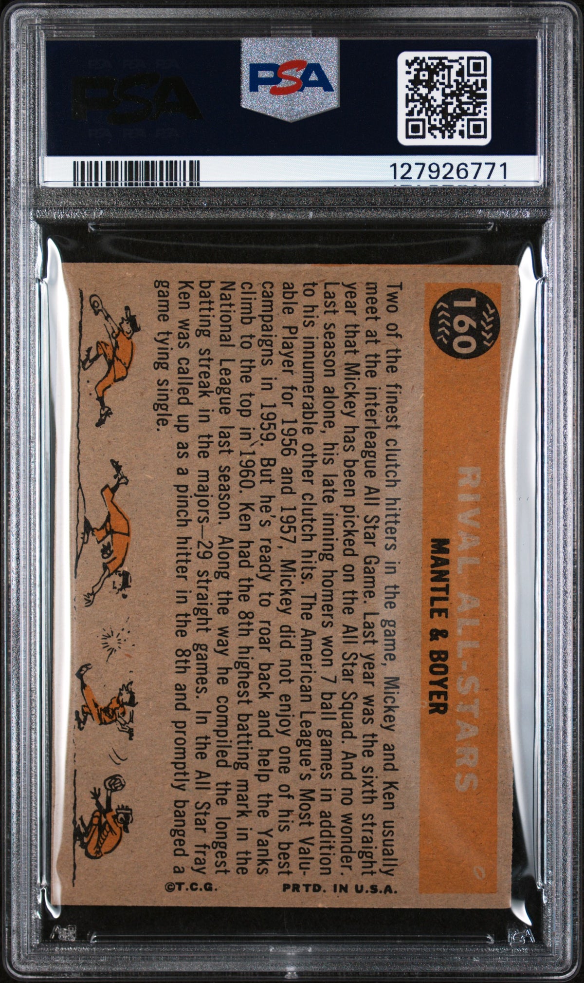 Step back in time with this vintage gem from 1960 - a Topps #160 Mantle & Boyer card from the illustrious 'Rival All Stars' set. This is no ordinary sports card; it's a piece of baseball history featuring two of the game's greats in one remarkable card.