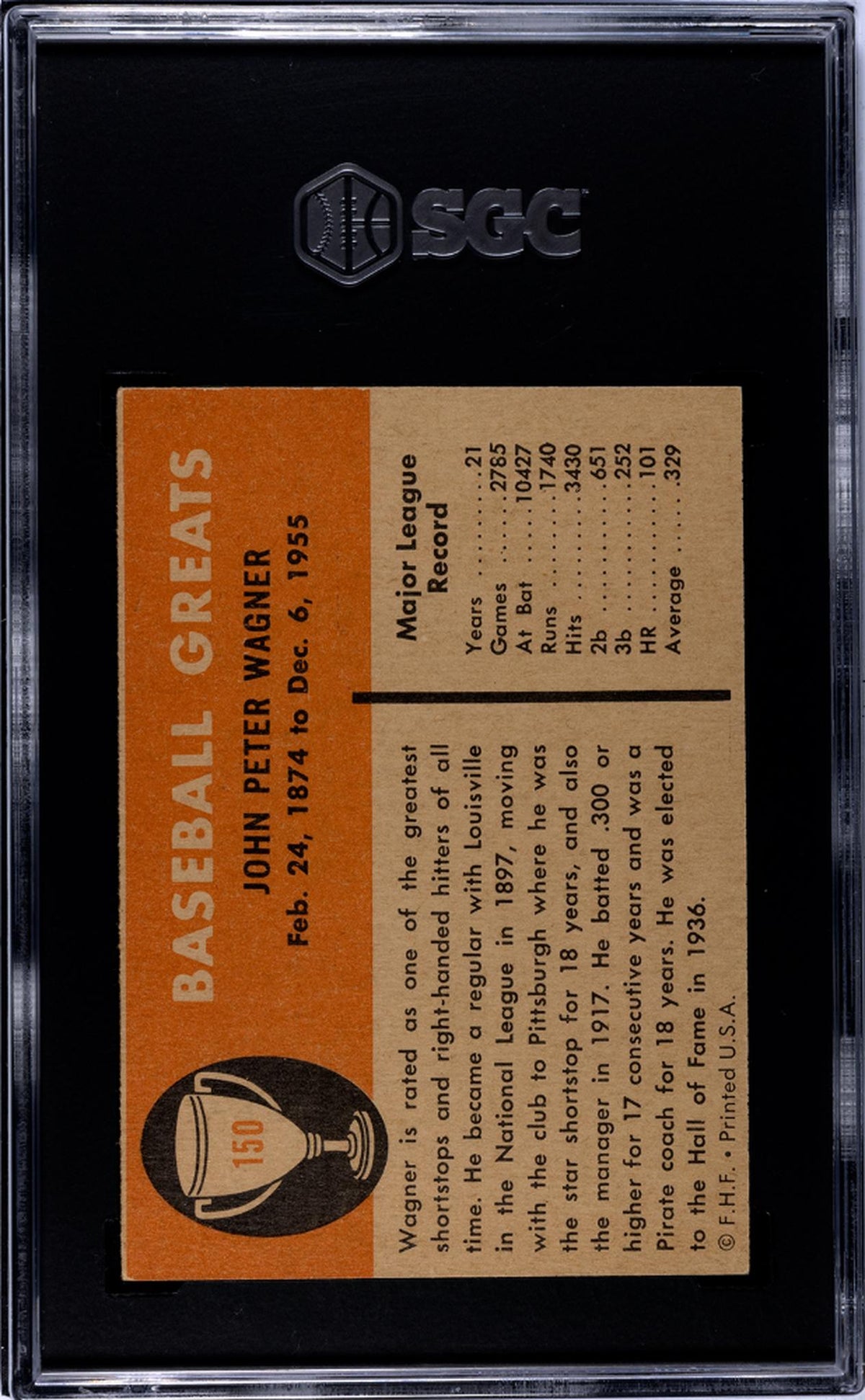 This is more than just a card, it's a piece of baseball history, a tribute to a legend, and a true collector's item. Whether you're a seasoned collector or a new enthusiast, this Honus Wagner card is a must-have addition to your collection. Experience the magic and nostalgia of baseball's golden era with this exquisite card. Embrace the opportunity to own a piece of history with the 1961 Fleer #150 Honus Wagner Baseball Greats card.