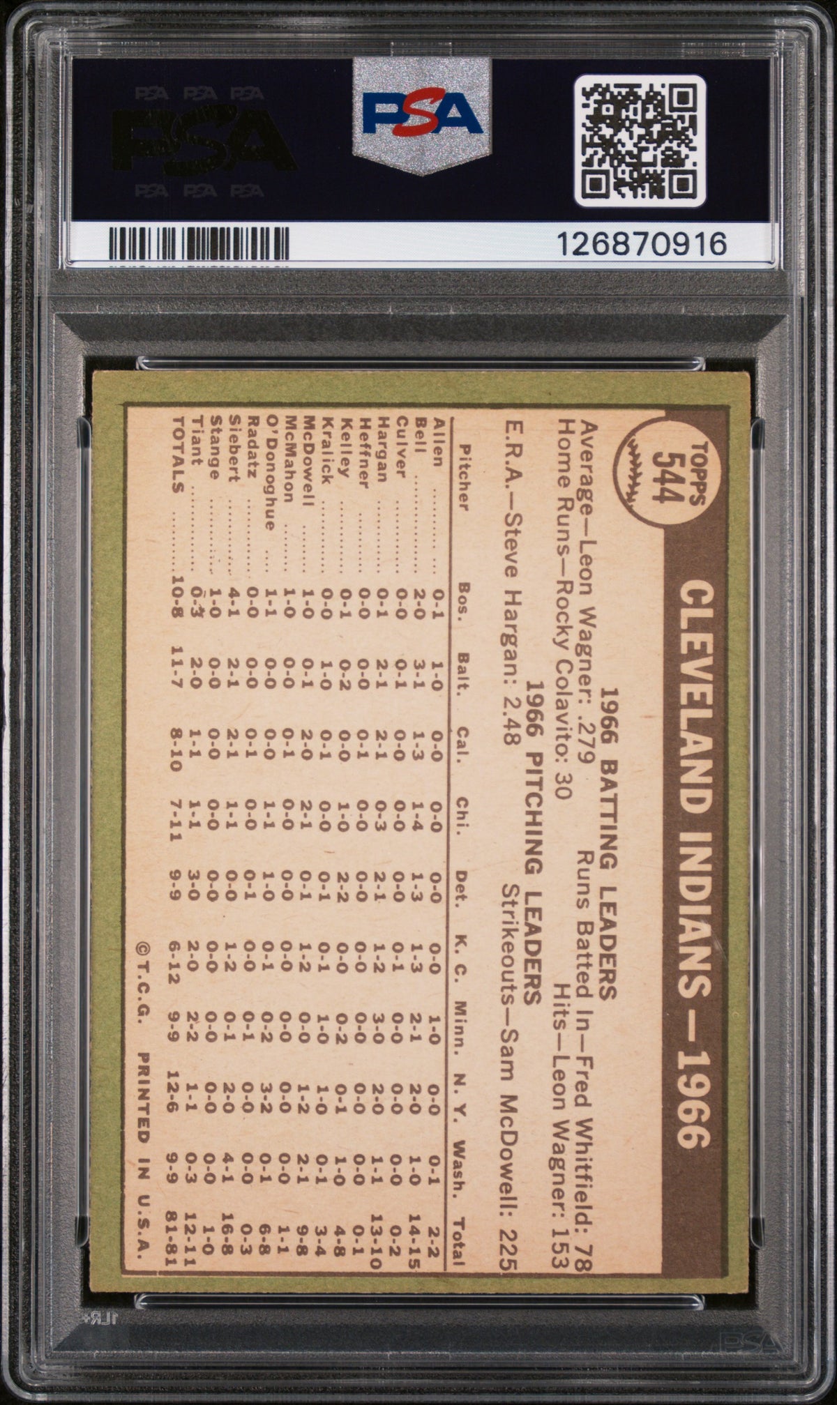 1967 Topps Cleveland Indians #544 PSA 6