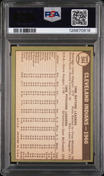 Immerse yourself in the nostalgia of vintage baseball with this captivating 1967 Topps Cleveland Indians baseball card. As a testament to its timeless appeal, this card, manufactured by Topps, a trusted name in the business, has been professionally graded 'EX-MT' 6 by PSA, ensuring its superb quality and condition. Decked with the distinctive team image of the Cleveland Indians, this card serves as a remarkable piece of sports history from the era. The card's simplistic yet classic design is a charming throwback to the aesthetics of the 1960s, giving it a unique, vintage allure that's hard to resist. As a part of the iconic 1967 Topps set, this card is more than just a collectible. It's a nostalgic trip down memory lane, a tangible piece of baseball heritage, and a tribute to the Cleveland Indians' contribution to MLB. Whether you're a seasoned collector or a passionate Cleveland Indians fan, this 1967 Topps card is an invaluable addition to any collection. Rarely does one come across such well-preserved memorabilia from the past. This card is not just a collectible, but a slice of baseball history that brings the past to life. Its rich heritage and the timeless charm of vintage Topps baseball cards make it a must-have for any serious collector. Don't miss the opportunity to own this classic piece of baseball history.