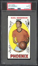 Behold the vintage charm of this 1969 Topps Basketball card, featuring the legendary player Gail Goodrich. From the esteemed manufacturer, Topps, this card is a testament to the rich history of basketball and a tribute to Goodrich's outstanding stint with the Phoenix team. The card, numbered as '2', is not just a collectible, but a piece of sports history, encapsulating the glory of the game in the late '60s.