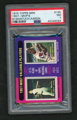 Behold the excellence of this 1975 Topps Mini M. Mantle/H. Aaron card, a true gem for any sports card enthusiast. This card represents the iconic duo of Mickey Mantle and Hank Aaron, the Most Valuable Players of 1957. Their legendary status in the world of baseball is unquestionably engraved in the history of the sport, and now you have the opportunity to own a piece of that history.