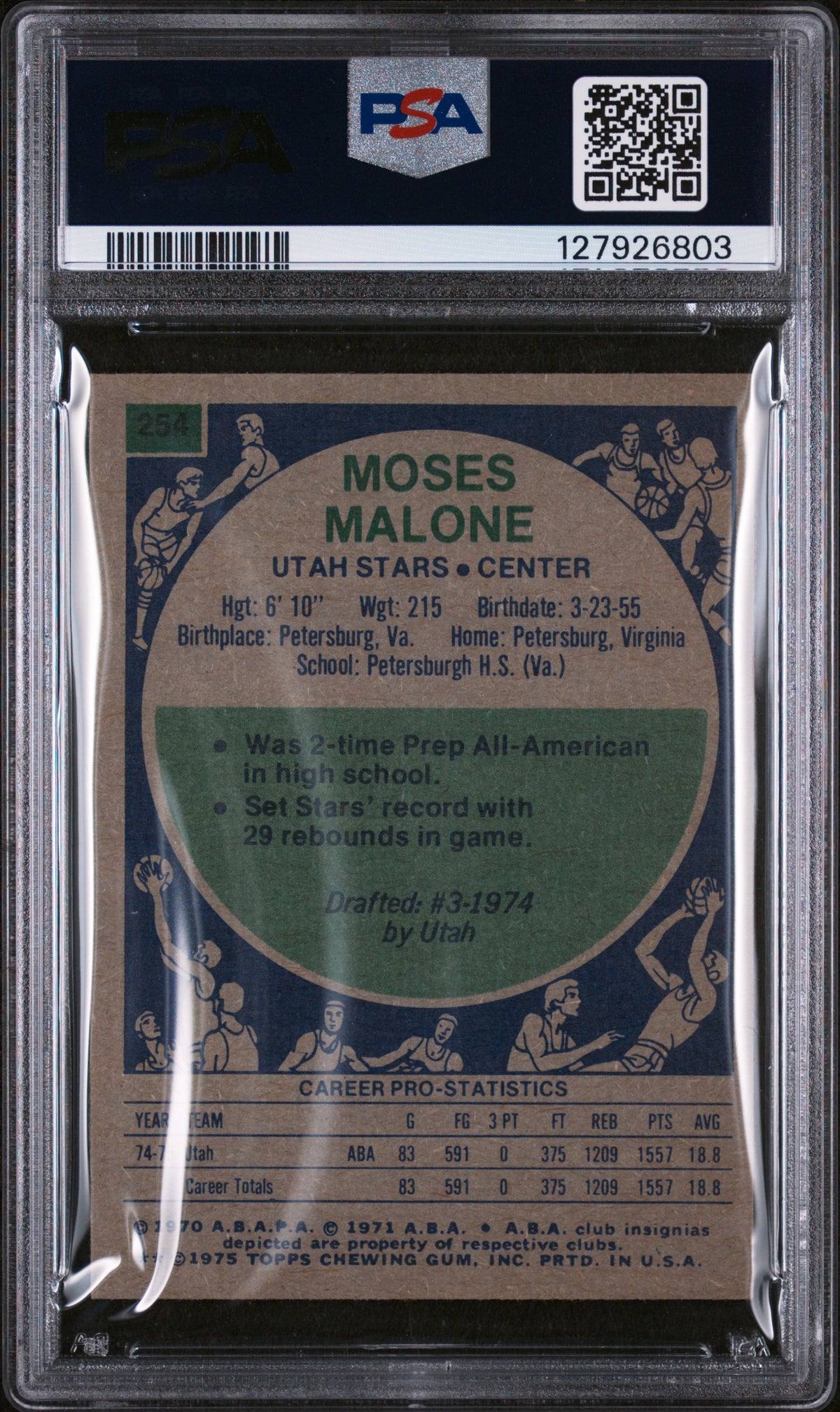 1975 Topps Moses Malone #254 PSA 6