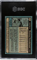 Step onto the baseball field with this stunning 1980 Topps #482 Rickey Henderson rookie card. A perfect addition to any sports card collection, this card features the iconic and legendary Rickey Henderson, a player who truly needs no introduction. With the distinctive Topps brand quality, this card has been graded EX 5 by the reputable SGC, a testament to its excellent condition.