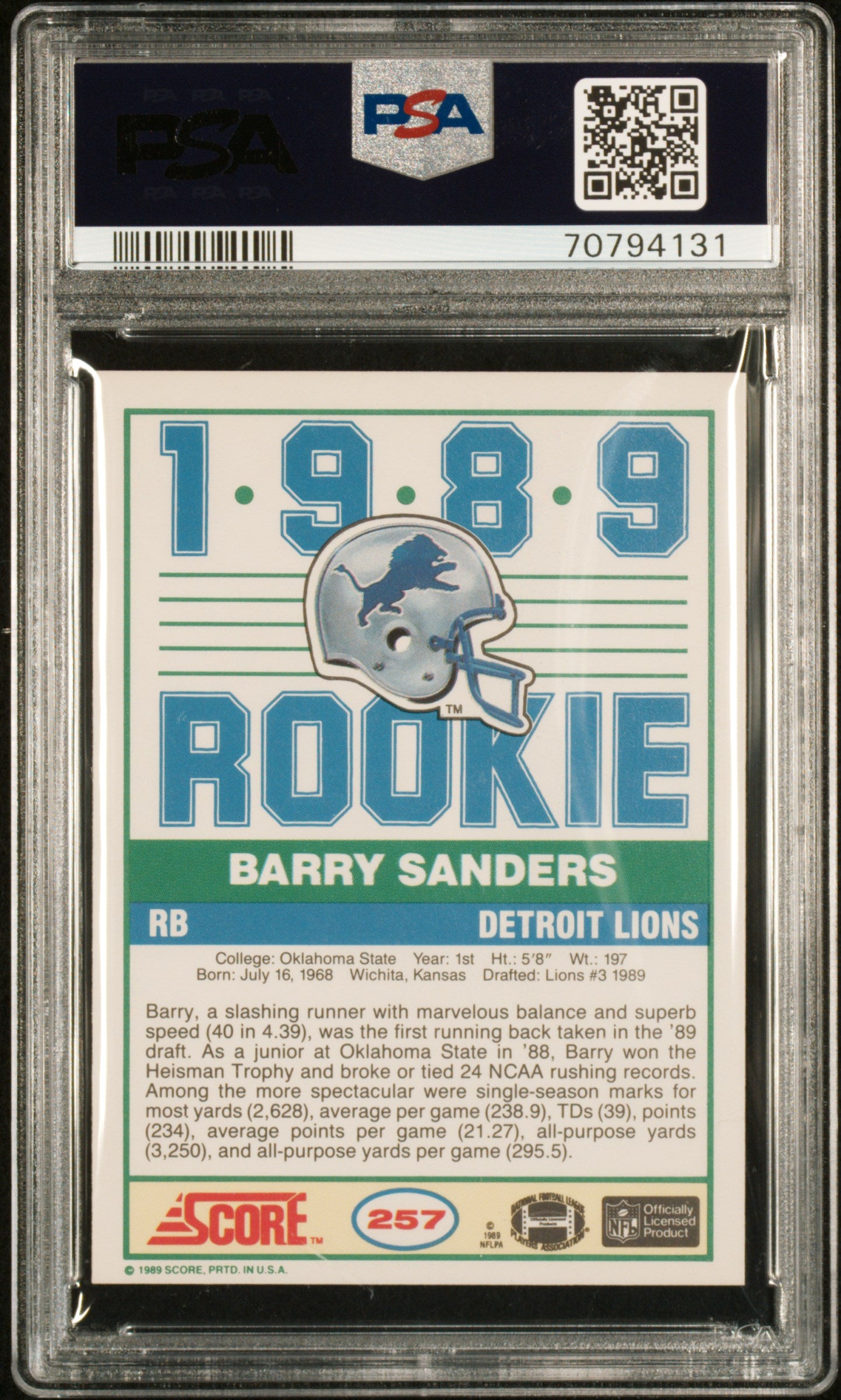 1989 Score Barry Sanders #257 PSA 9