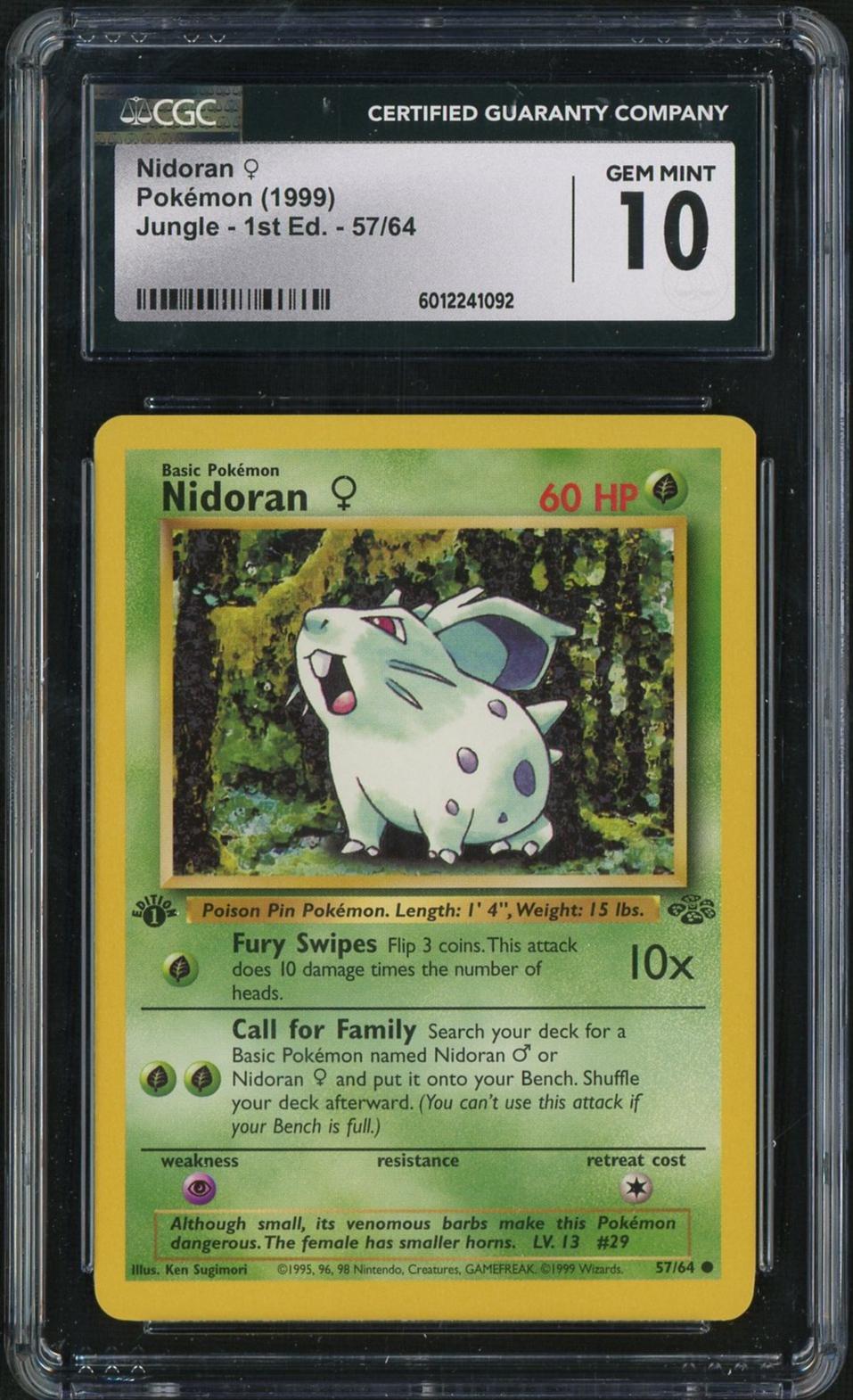 1999 Pokémon 57/64 Nidoran ♀ Jungle - 1st Edition 6012241092 CGC 10