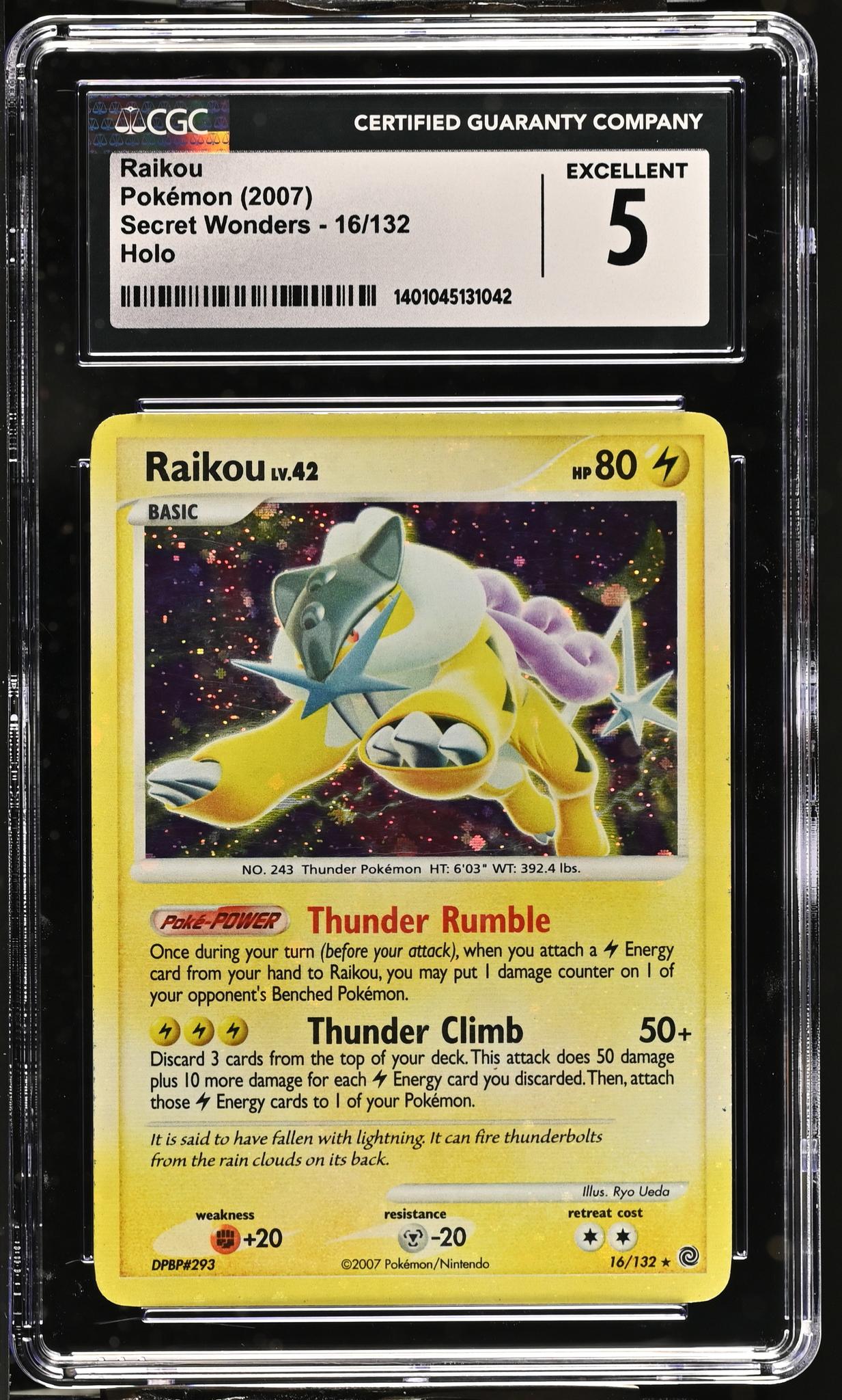 2007 Pokémon Diamond & Pearl Secret Wonders Raikou #16/132 Holo CGC 5