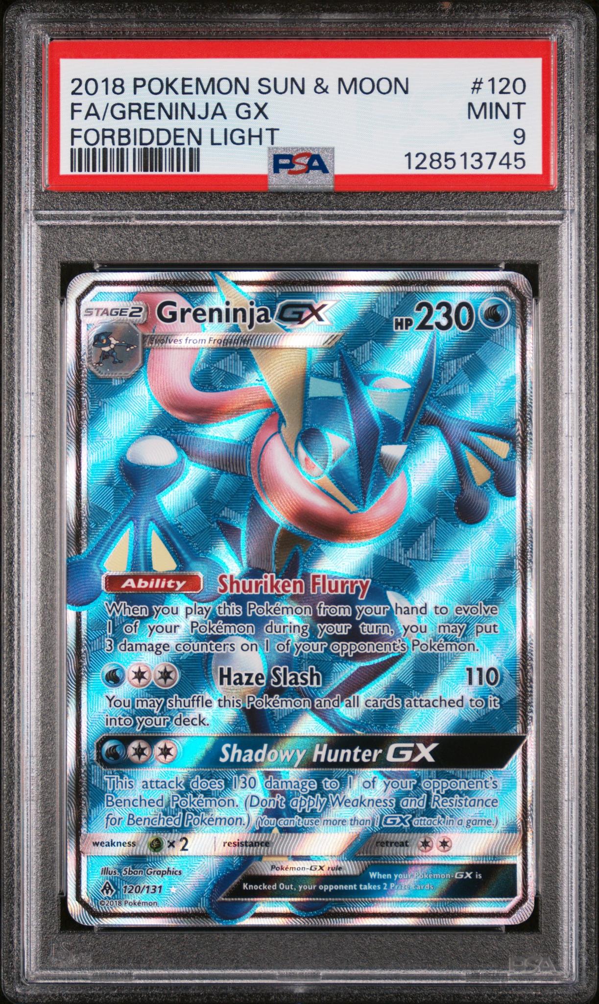 2018 Pokemon Sun and Moon Forbidden Light Greninja Gx #120 PSA 9
