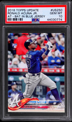 Experience the thrill of owning this 2018 Topps Update Ronald Acuna Jr. #US250 PSA 10 card. A must-have for any serious collector, this card showcases the rising baseball star Ronald Acuna Jr. in his glory. The card itself, from the renowned Topps Update series, is a testament to its high-quality production.