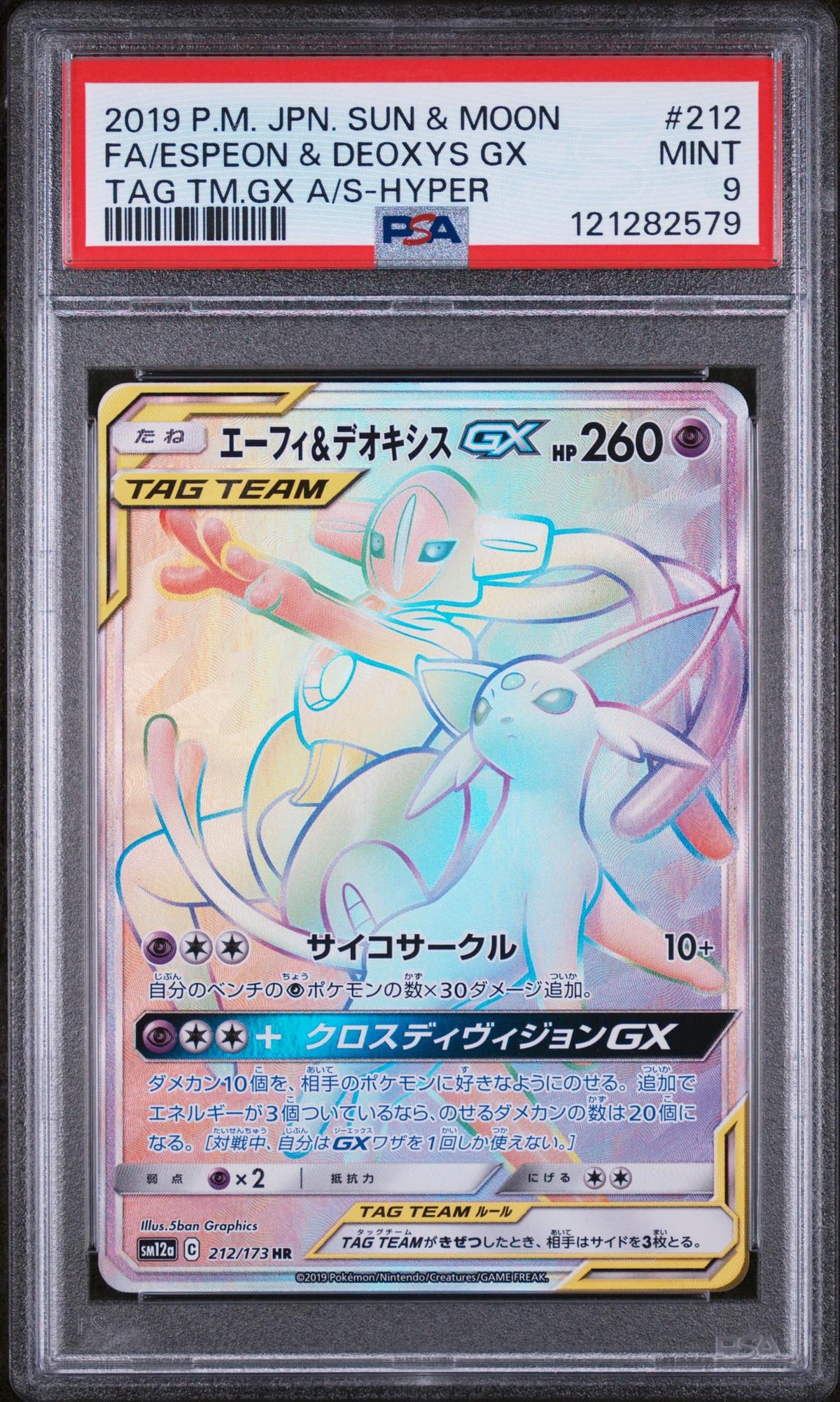 2019 Pokemon #212/173 Espeon & Deoxys GX TAG TEAM GX PSA 9