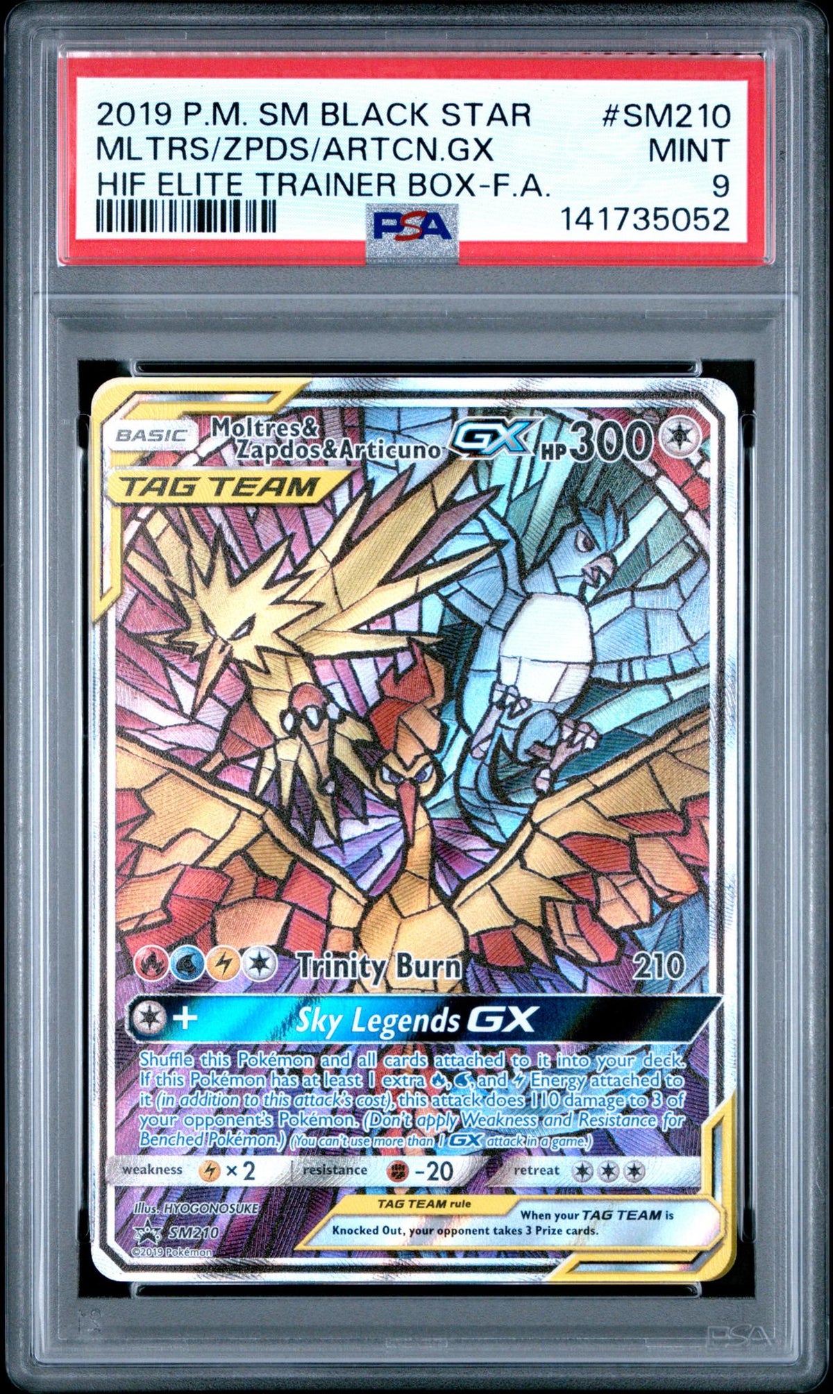 2019 Pokemon Sun and Moon Black Star Promo Hidden Fates Elite Trainer Box Articuno/Moltres/Zapdos Gx #SM210 PSA 9