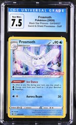 The 2020 Sword & Shield SWSH007 Frosmoth card does not include any memorabilia but its value lies in its intrinsic appeal. This collectible Pokemon card boasts the unique ability 'Ice Dance', making it a must-have addition to any Pokemon card collection.