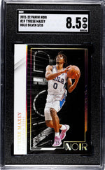 The beautiful 2021-22 Noir #19 Tyrese Maxey from Panini Noir Basketball card set will surely be the crown jewel in your collection. The key features of this card - including the striking Holo Silver parallel, the limited serial number, and the SGC grading - make it a premium item not just for Maxey fans, but for all NBA enthusiasts.