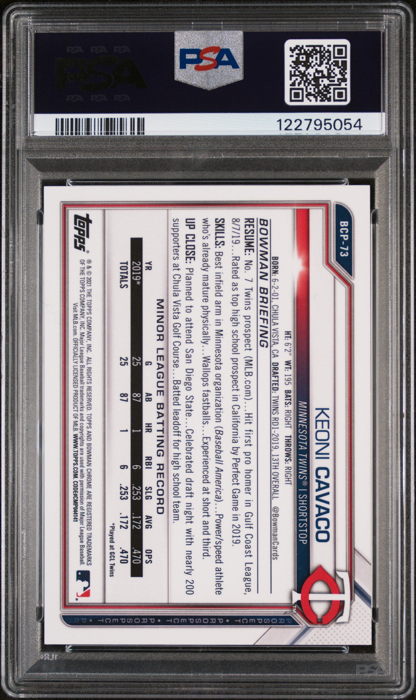 2021 Bowman Chrome Prospects Yellow Mini Diamond Refractor Keoni Cavaco #BCP73 PSA 9
