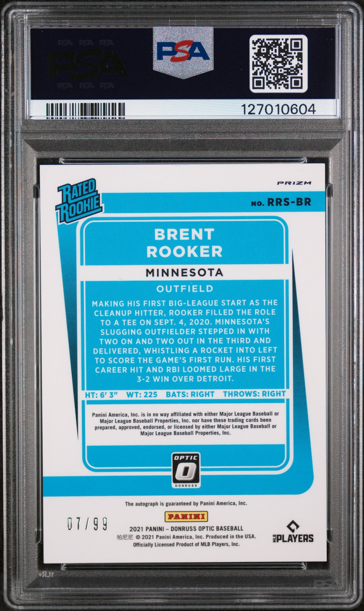 Immerse yourself in the thrilling world of Major League Baseball with this exquisite 2021 Brent Rooker rookie card. Manufactured by the renowned Panini and hailing from the 'Donruss Optic' range, this card is a gem for any collector. It boasts the prestigious 'Rated Rookie' insert, a signature of quality that marks it as a standout piece.