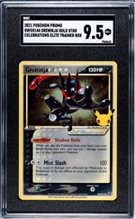 Key features of this collectible include its Gold Star status, its belonging to the Celebrations Elite Trainer Box, and its high SGC grade of 9.5. This card is not only a wonderful addition to your collection but also a piece of the rich history of the Pokemon universe.