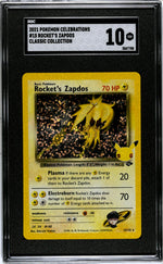 Feast your eyes on this awe-inspiring "Rocket's Zapdos" sports card straight from the brilliant minds at Nintendo. A rare gem from the esteemed 2021 Pokemon Celebrations set, this card is a must-have for any seasoned or budding Pokemon enthusiast. Sporting the 'Classic Collection' tag, this card is a testament to the rich legacy of the Pokemon franchise.