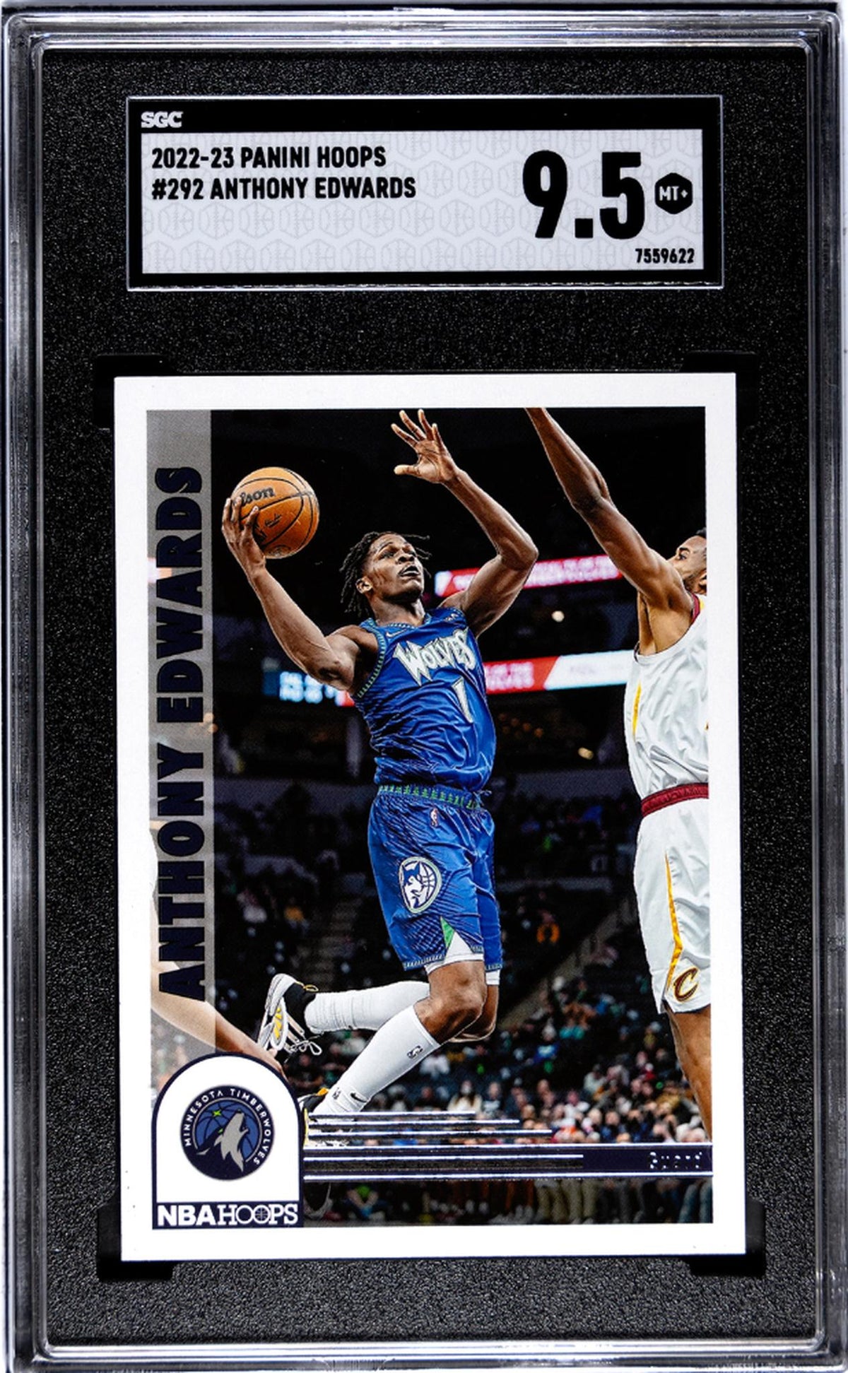 Whether you're a fan of the Minnesota Timberwolves, an Anthony Edwards supporter, or a collector seeking high-grade cards, this item is a perfect choice. Its key features include its subject - the talented Anthony Edwards, its part in the 2022-23 NBA Hoops collection, and its impressive 9.5 MT grade by SGC.