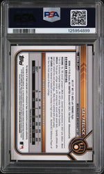Key features include Sal Frelick's autograph, Topps' trusted manufacturing, PSA's 'Gem Mint' grading, and the Bowman Mega Box Chrome Autograph branding.
