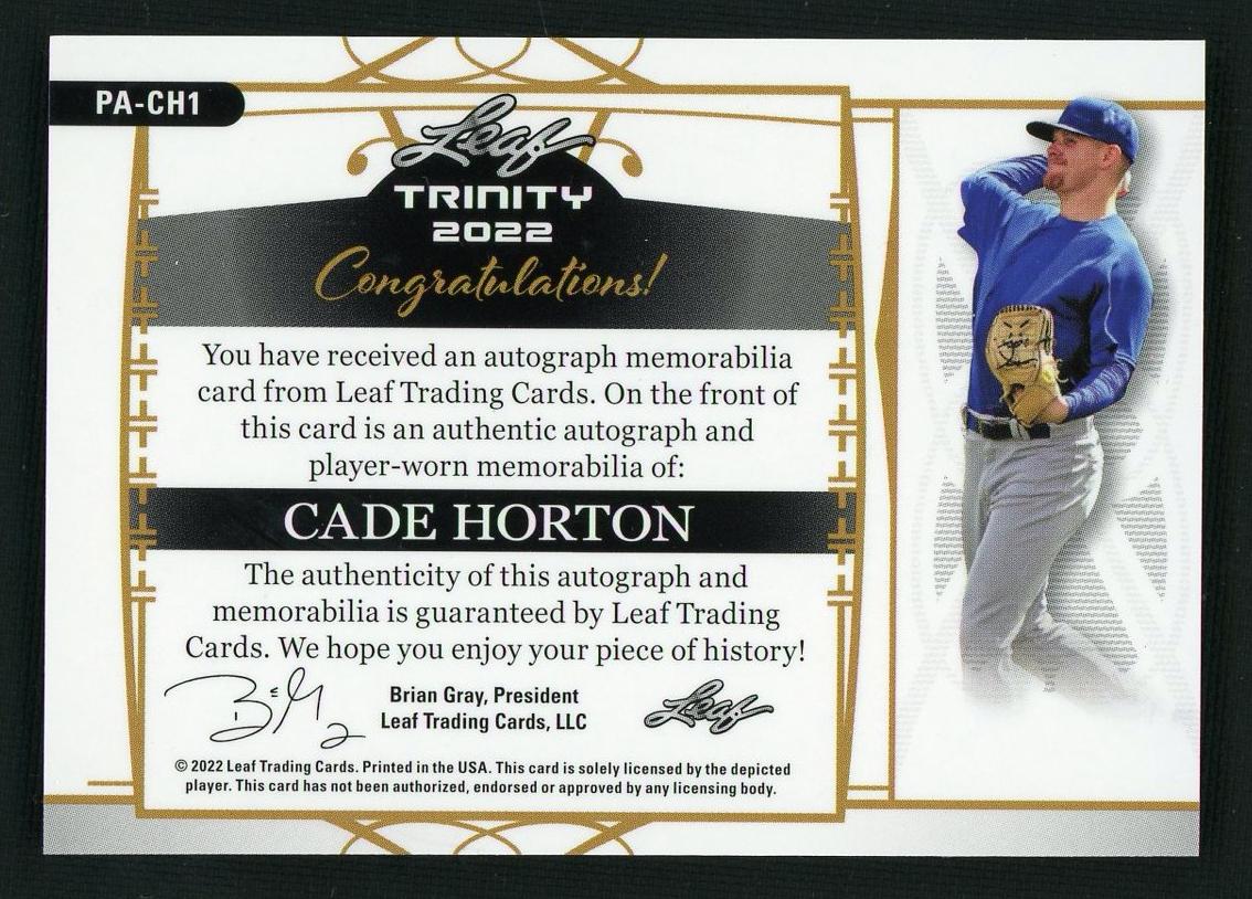 In conclusion, the 2022 Trinity PA-CH1 Cade Horton is more than just a sports card; it's a tangible piece of sports history that captures the excitement and potential of a rising star's journey right from the start. Don't miss this chance to own a part of that journey and add this remarkable piece to your collection today.