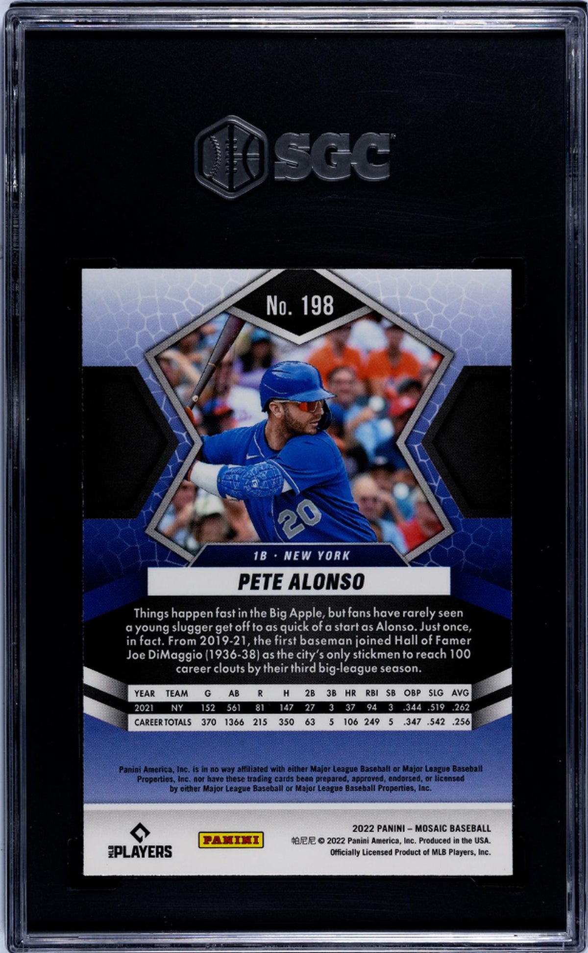 Card #198 is a testament to Pete Alonso's undeniable talent and influential presence on the field. The fact that it's not a rookie card only enhances its value, as it represents a period of Alonso's career where he had already proven his mettle and established his standing in the league.