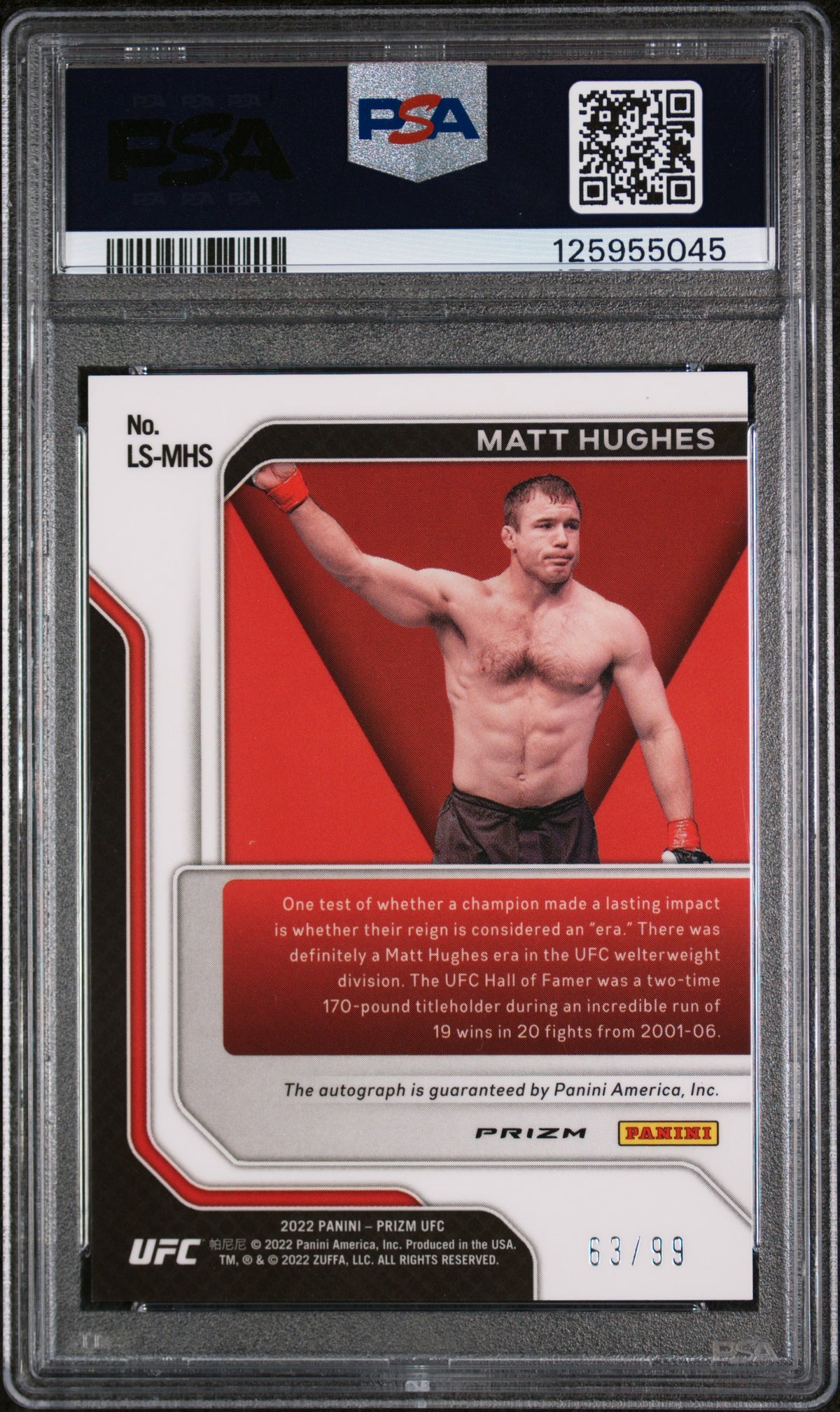 2022 Panini Prizm UFC Legendary Signatures Red Prizm Matt Hughes #LSMHS /99 PSA 9