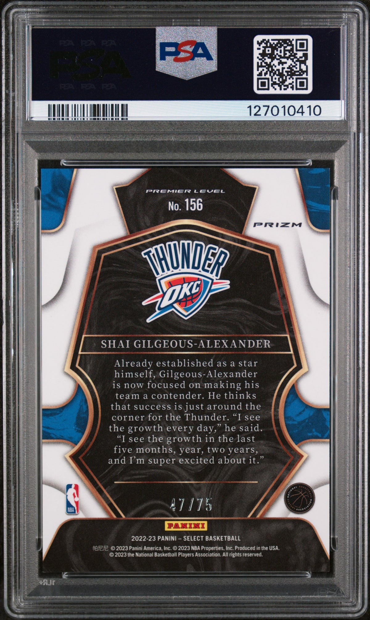 Grab this opportunity to own a piece of sports history with this exquisite, high-grade Shai Gilgeous-Alexander card from the 2022-23 Panini Select Basketball set. This card is a perfect choice for collectors who love the game and appreciate the artistry and exclusivity of premium sports cards.