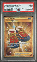 This Trekking Shoes card doesn't just bring you closer to the game; it's a valuable collector's item from the Pokemon SWSH brand, known for its high-quality and engaging collectibles. Its key features include its Astral Radiance-Secret status, Mint 9 PSA grading, and of course, the depiction of the Trekking Shoes.