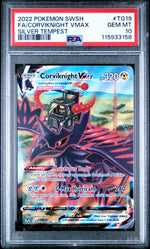 Delve into the world of Pokemon with this dazzling 2022 Corviknight VMAX card, a treasured piece from the Silver Tempest set. Manufactured by Nintendo, this card boasts an impeccable PSA 10 Gem Mint condition, signifying the card's top-notch quality and maintenance. A stunning addition to any Pokemon collection, it exhibits visually stunning artwork that truly captures the power and majesty of Corviknight VMAX. Whether you're an avid Pokemon enthusiast or a discerning collector, this card is a notable acquisition. Its speciality lies in the VMAX status, indicating powerful abilities that are sure to enhance your gameplay. The card is not a rookie, signifying the established popularity and value of the Corviknight character in the Pokemon universe. While it does not include autographs or memorabilia, its professionally graded status ensures its authenticity and value. This is a card that not only enhances your collection but promises a strategic edge in your game. So, don't miss out on the chance to showcase your Pokemon prowess with this Gem Mint Corviknight VMAX card from the Silver Tempest set.