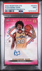 The 2022 Inception IA-AS3 Alexandre Sarr card is a testament to the thrilling world of basketball and the players who make the game what it is. Key features of this card include its Topps Inception branding, mint condition, PSA grading, autograph, Magenta parallel design, and association with OTE Basketball.