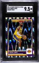 Immerse yourself in the world of basketball collectibles with this stunning 2023-24 Panini Hoops Pr. Stock Seismic Prizm card featuring none other than the iconic LeBron James of the Los Angeles Lakers. Manufactured by the esteemed Panini brand, this card is a true representation of the high-quality craftsmanship that the brand is famous for.