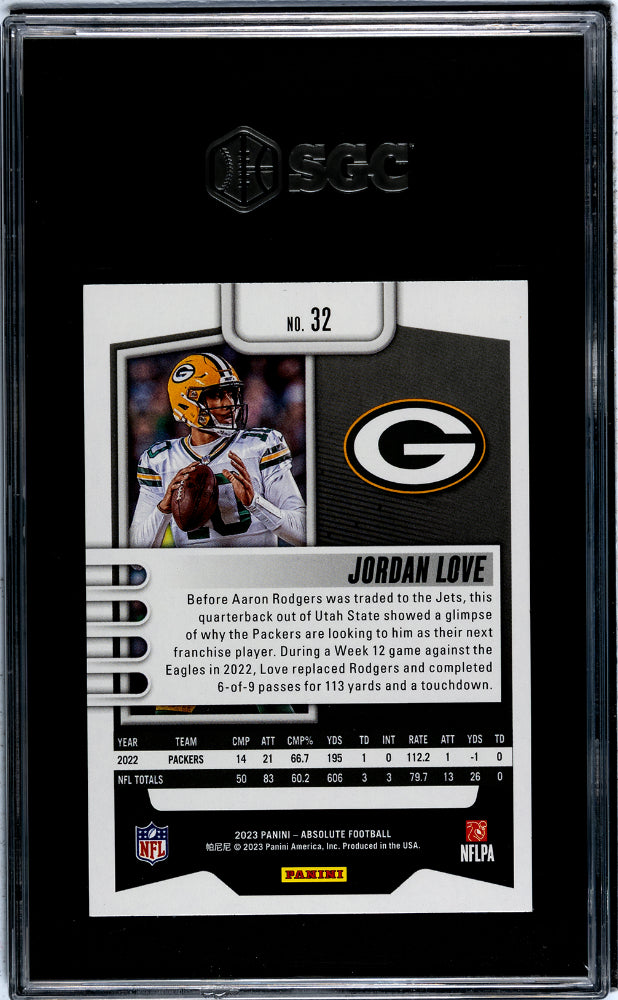 This Jordan Love card, being part of the Absolute Football set, is a must-have for any serious sports card collector. It represents a piece of NFL history, celebrating the talent and success of one of the most promising quarterbacks in the league.