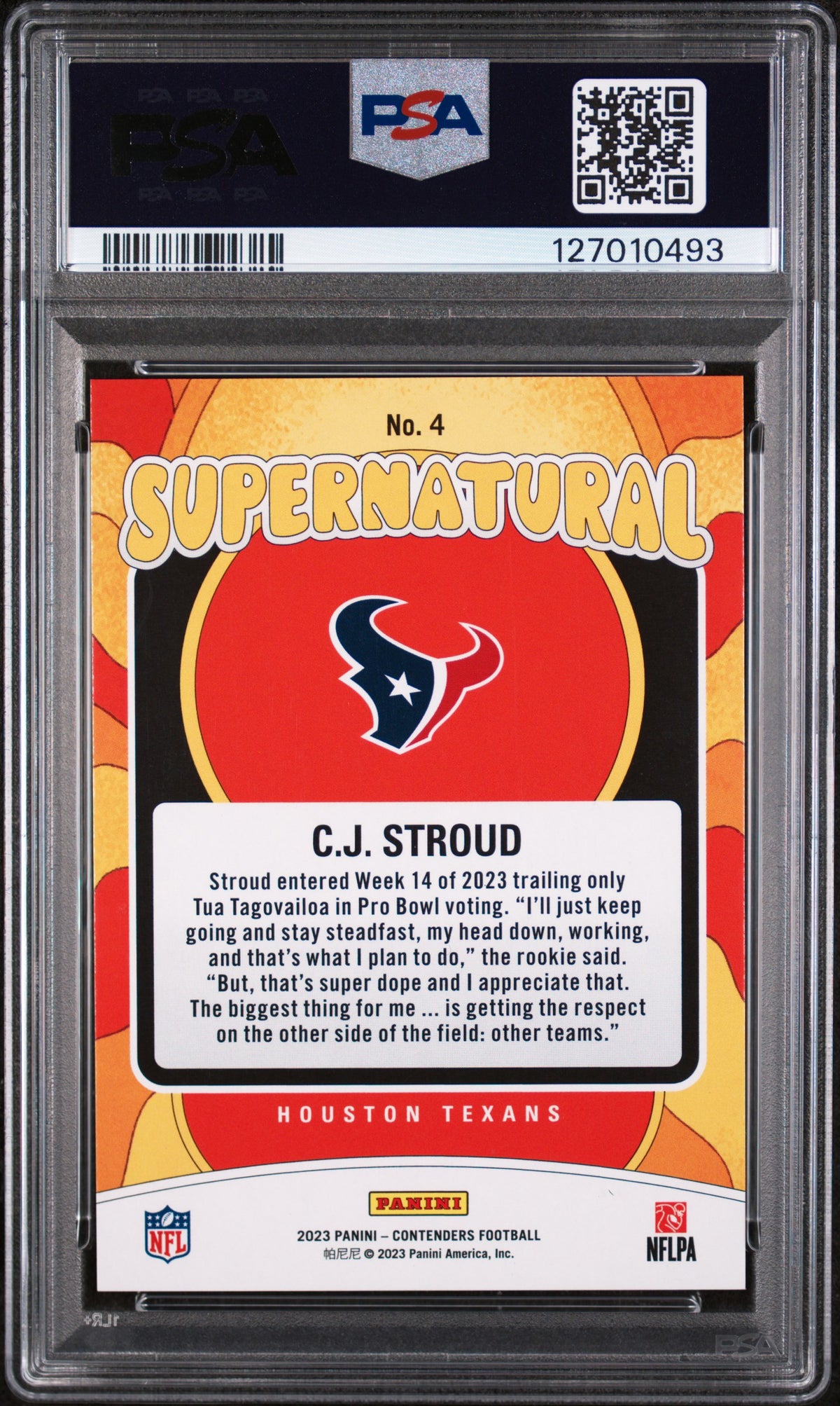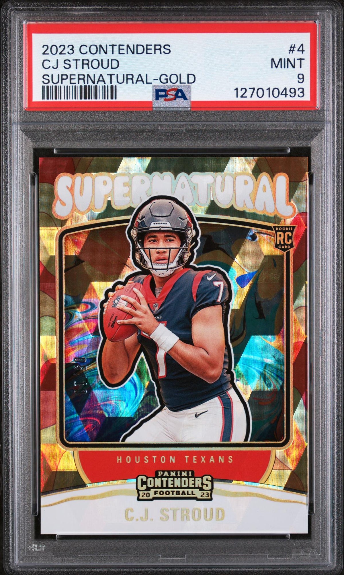 This superb card has been professionally graded by PSA, the industry's leading grading company. With a stellar numeric grade of 9, this card is in Mint condition, a perfect preservation of Stroud's dynamic presence on the field. The fact that it's a rookie card of this exciting player only heightens the allure, making it a must-have piece for any serious collector or NFL enthusiast.