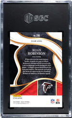 The card features the young and promising player from the Falcons team in the NFL, adding a significant value to the item. This is a rookie card, signifying the beginning of Robinson's professional journey, making it a special keepsake for those who love to track a player's growth from the start.
