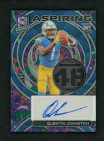 Step into the arena of true sports memorabilia with this exceptional Quentin Johnston football card. Manufactured by the renowned Panini, this card hails from their esteemed Spectra brand and is part of the highly sought-after 'Aspiring' insert set.