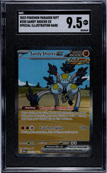 Introducing the captivating 2023 Pokemon 250 Sandy Shocks EX card from the Paradox Rift set - an absolute gem for any serious Pokemon collector. This card features the dynamic character of Sandy Shocks EX, a notable figure in the Pokemon universe, making it a must-have addition to any robust collection.