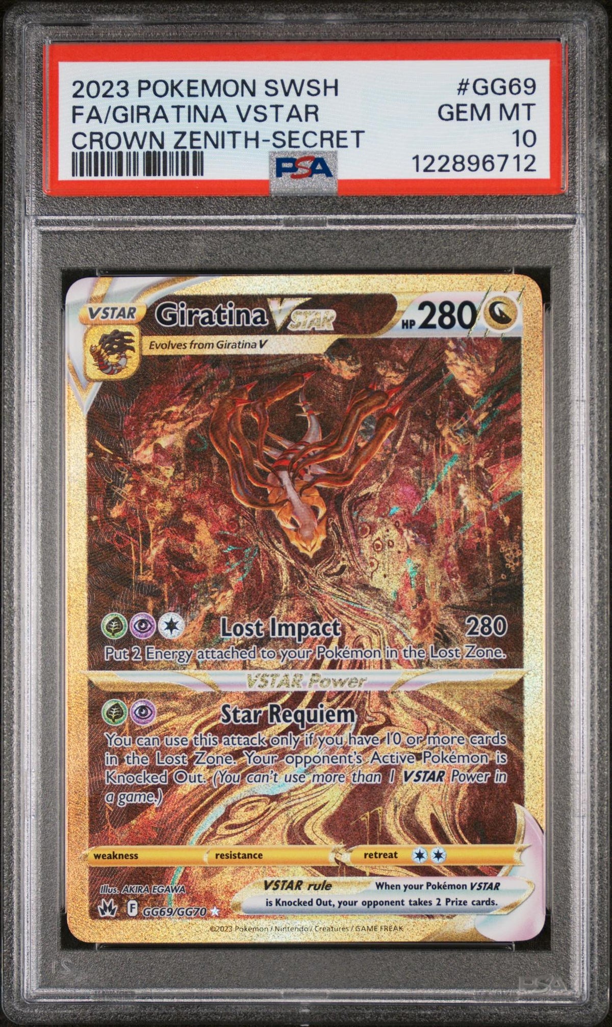 The Giratina VSTAR card is a must-have for any serious Pokemon card collector or enthusiast. Its superior grade, exciting features, and part of the esteemed 'Crown Zenith-Secret' set make it a valuable and worthy addition to your collection. Don't miss this opportunity to own a piece of Pokemon history!