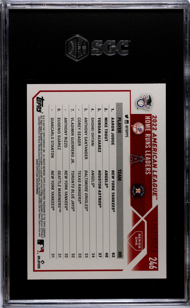 2023 Topps #246 Judge/Trout/Alvarez Lg. Leaders, Gold /2023 SGC 9
