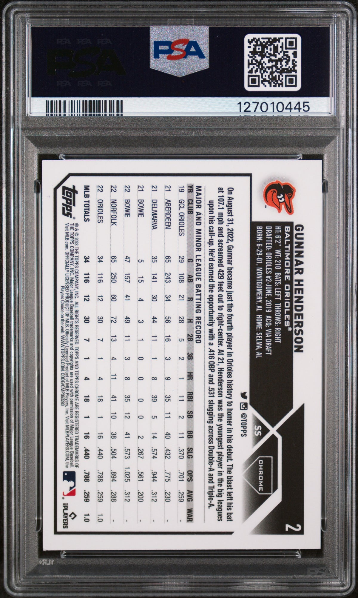2023 Topps Chrome Logofractor Purple Refractor Gunnar Henderson #2 /250 PSA 8