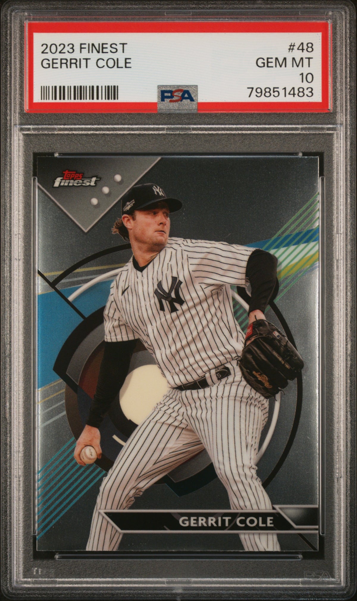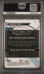 This card doesn't just honor a player; it's a piece of baseball history, a snapshot of Cole's career in 2023. The key features of this card include its 2023 Finest status, Gerrit Cole as the player, Topps as the manufacturer, and its PSA Gem Mint 10 grading. It's not just a card; it's a collectible item, brimming with the spirit of America's favorite pastime.