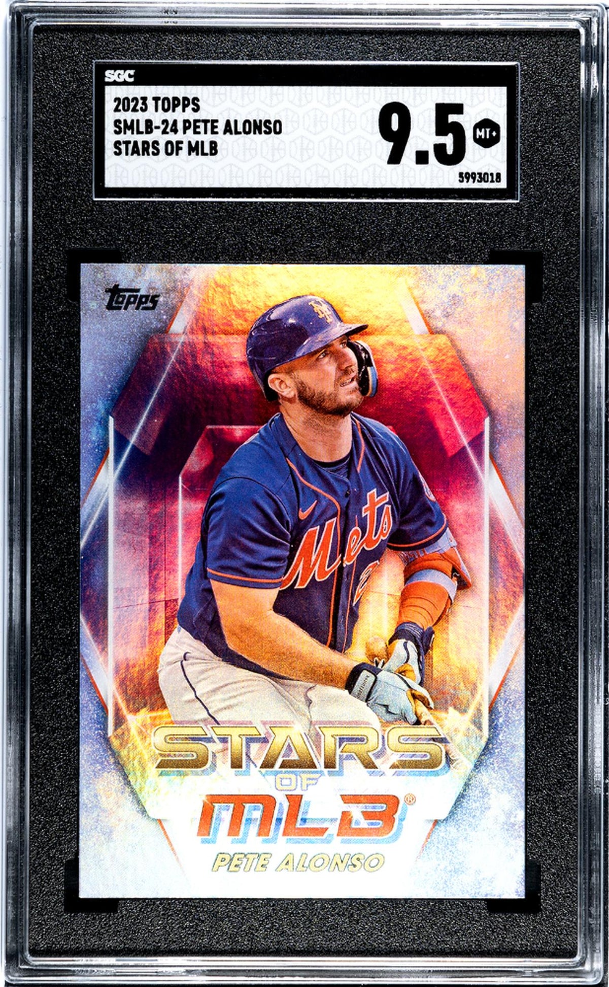 This card hails from the sought-after 'Stars of MLB' insert set by Topps, a brand synonymous with quality and prestige in the sports card industry. This set is celebrated for its selection of top-tier players, and having a Pete Alonso card from this set is a testament to any collector's discerning taste.