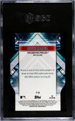 This card is not a rookie card, which amplifies its significance as it showcases Harper in his prime, delivering stellar performances and making significant contributions to his team and the league. The card does not include any autograph or memorabilia, but its value lies in its exceptional grade and the prestige of the player it represents.