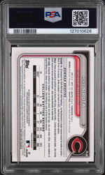 Dive into the world of sports card collecting with this stunning 2024 Bowman Mike Sirota rookie card. As part of the esteemed Chrome Prospect Autograph set by Topps, this card is a must-have for any serious collector or Cincinnati Reds fan. The card features an authentic autograph from Mike Sirota himself, lending an exclusive personal touch. This card is professionally graded by PSA, a leading authority in the field, and has received a fantastic NM-MT 8 grade, reflecting its near-mint to mint condition. This high grade assures you of the card's excellent quality and preservation. As a baseball card, it holds a special place in the hearts of sports enthusiasts, making it a terrific addition to any collection. The card boasts a vibrant design with the manufacturer's signature Chrome finish, enhancing its visual appeal. The card's key features include the player's name - Mike Sirota, his team - the Cincinnati Reds, and the year of production - 2024. The Bowman brand by Topps is known for its high-quality and collectible sports cards, making this card a worthy investment. Whether you're a long-time collector or a new enthusiast, this 2024 Bowman Mike Sirota card is sure to be a standout piece in your collection. Its rarity and autographed feature make it a unique find. Don't miss out on the opportunity to own a piece of baseball history with this wonderful collector's item.