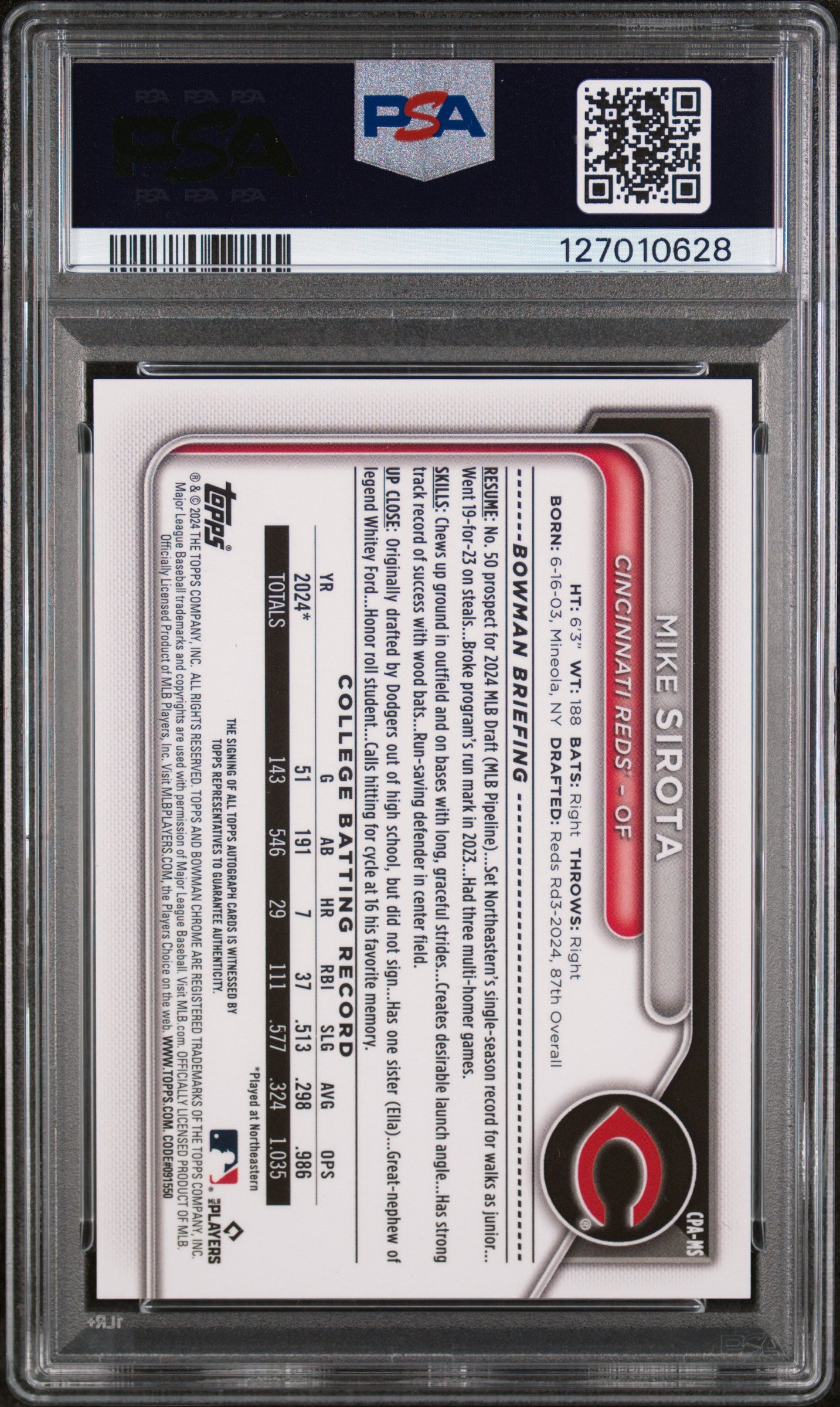 2024 Bowman Draft Chrome Prospect Autographs Mike Sirota #CPA-MS PSA 8