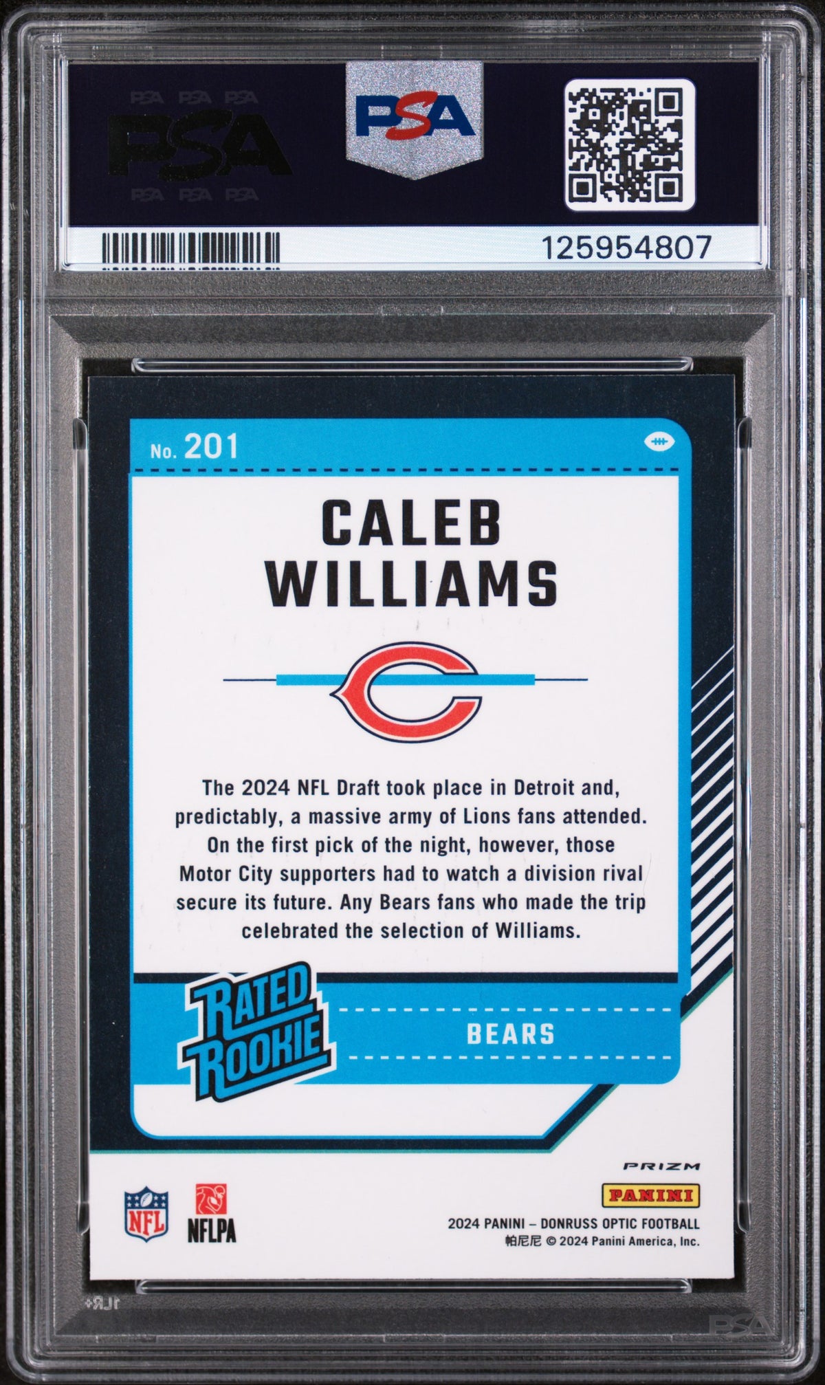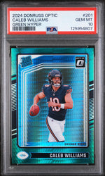 In summary, this 2024 Donruss Optic #201 Caleb Williams card is a beautiful memento of a promising player's rookie year. It's not just a card, it's a piece of NFL history, wrapped in a Green Hyper parallel design, preserved in gem mint condition, and ready to be the shining star of your collection. Do not miss out on the chance to own this unique piece of sports artistry.