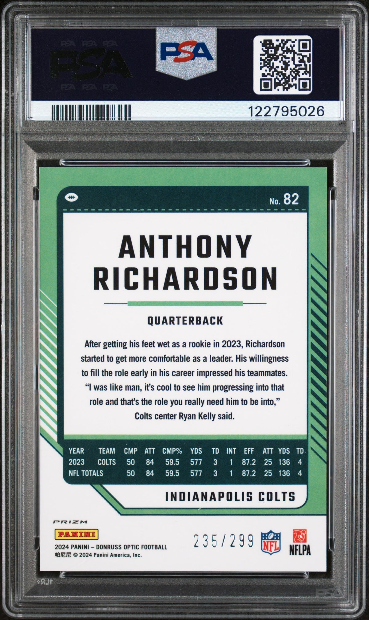 2024 Panini Donruss Optic Aqua Anthony Richardson #82 /299 PSA 9