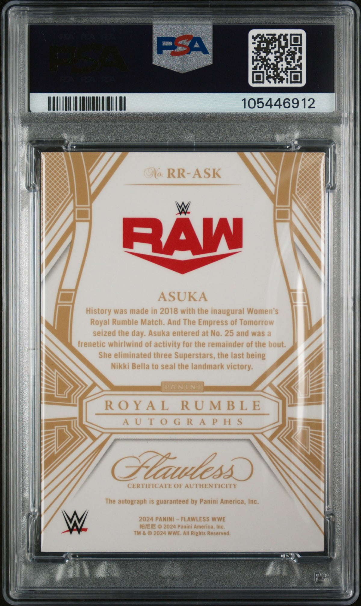 Don't miss out on the opportunity to add this stunning piece to your collection. The 2024 Flawless RR-ASK Asuka 07/10 PSA 8 card is a testament to Asuka's significant impact in the wrestling world, and its rarity and condition make it a truly valuable asset. Whether you're a die-hard Asuka fan or a dedicated card collector, this card deserves a place of honor in your collection.