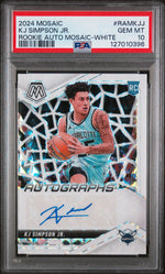 The key features of this card extend to its being part of the prestigious 'Rookie Auto Mosaic-White' set. With these exquisite features, this KJ Simpson Jr. card isn't just a collectible, it's a testament to an amazing athlete's journey in the NBA.