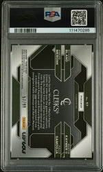 This card has been professionally graded by PSA, the most reputable name in the industry, and has achieved a perfect score of 10, categorizing it as 'Gem Mint.' This distinction speaks to the exceptional quality of the card, a testament to its impeccable state of preservation.