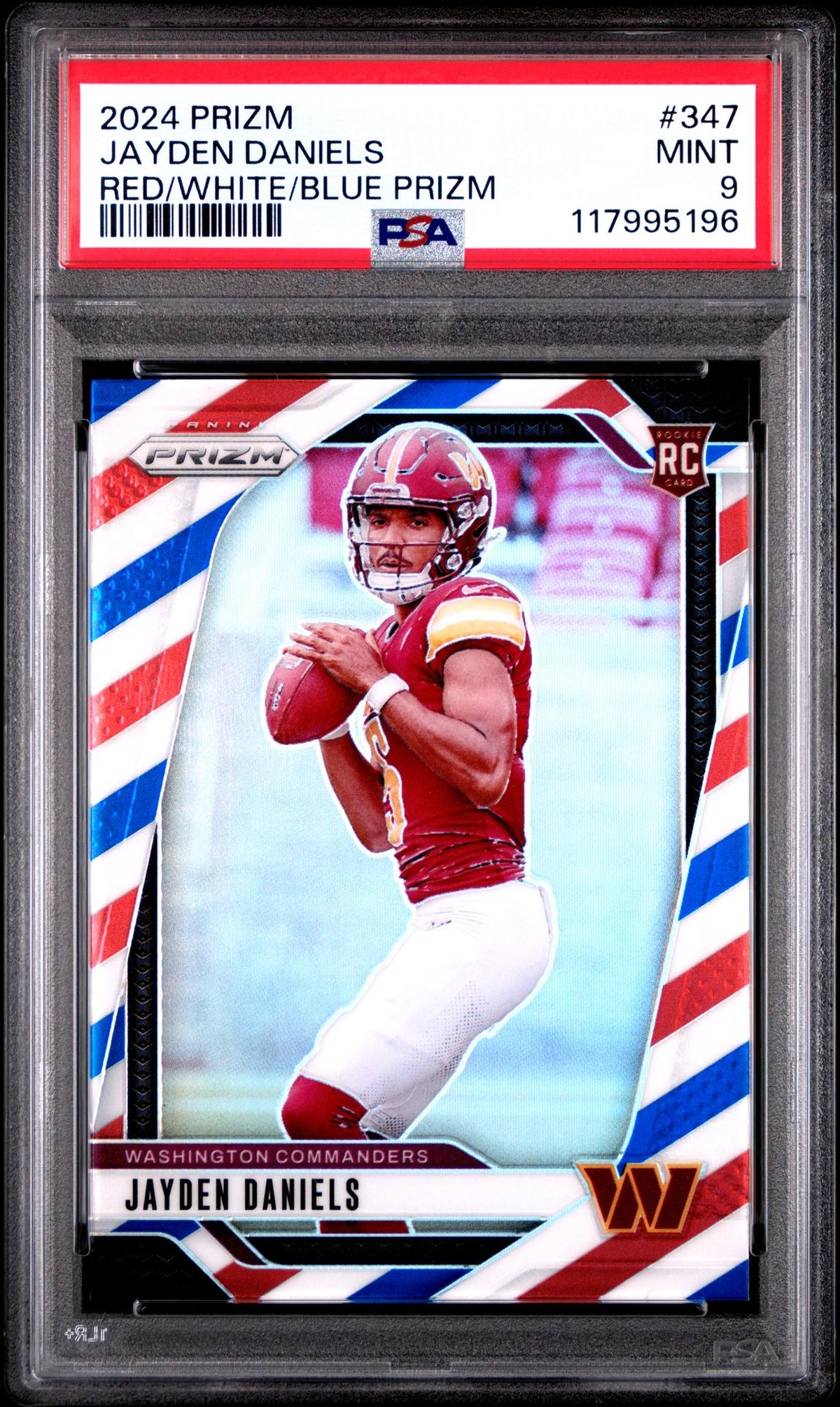 Presenting a top-tier sports collectible, the 2024 Panini Prizm #347 Jayden Daniels card. This sought-after rookie card from the Prizm Football set is a must-have for any football enthusiast or serious collector.